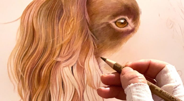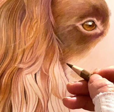 She works full-time on her portrait commissions, designs for craft stamps, colouring books and jigsaw puzzles.